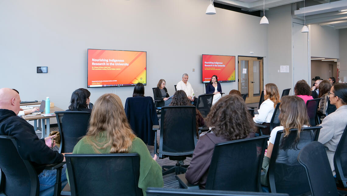 Hosted in partnership with the Faculty of Graduate Studies, the session opened with a smudge and prayer led by Elder and PhD student Dustin Walter, grounding the morning in ceremony and reflection.